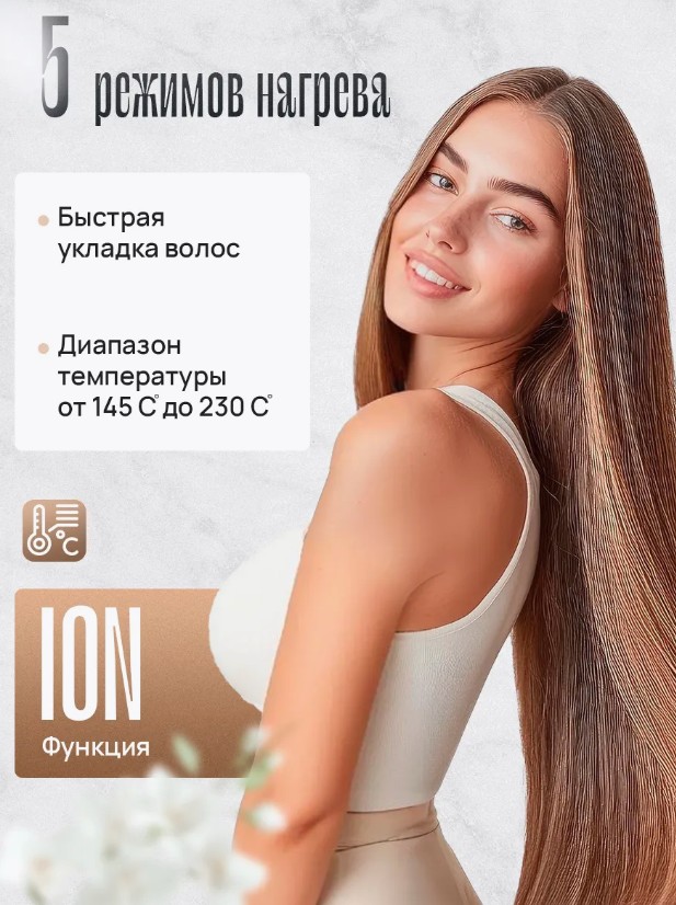 Специальные керамические ромбики равномерно распределяют тепло, не пережигая волосы. Они легко скользят по прядям, уменьшая повреждения и предотвращая появление секущихся кончиков.