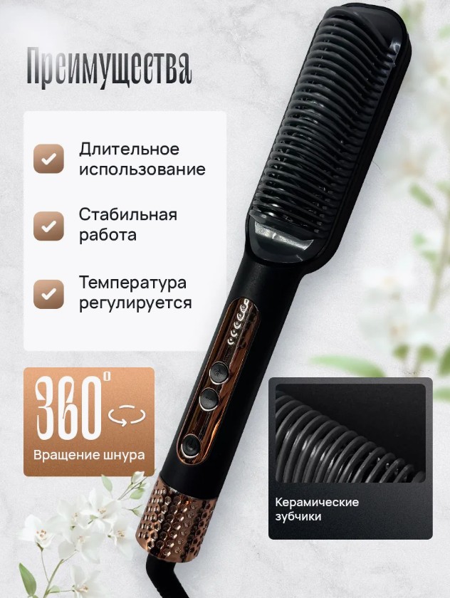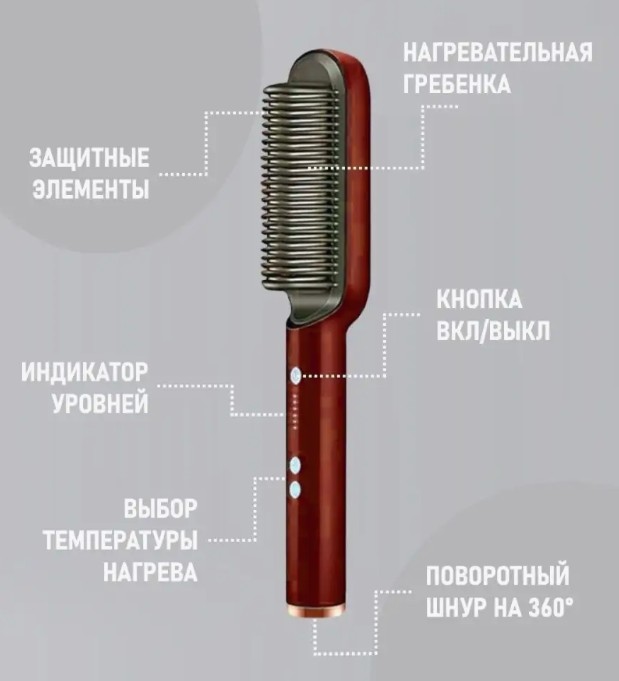 Эта расческа не только выпрямляет, но и придает волосам объем у корней. С ее помощью можно создать эффект натуральной укладки или идеально гладкие пряди без утюжка. Безопасное покрытие предотвращает перегрев и защищает кожу головы. Вы сможете наслаждаться профессиональной укладкой каждый день, не выходя из дома!