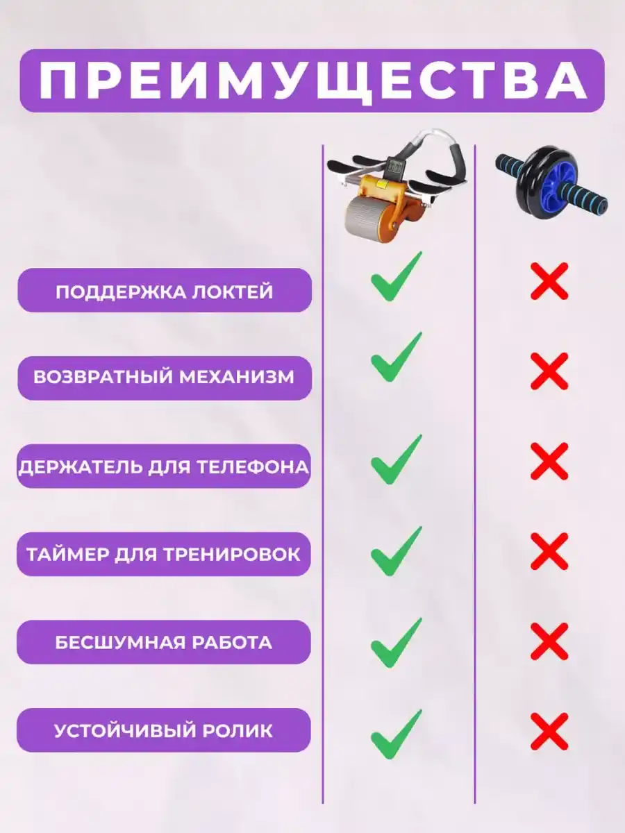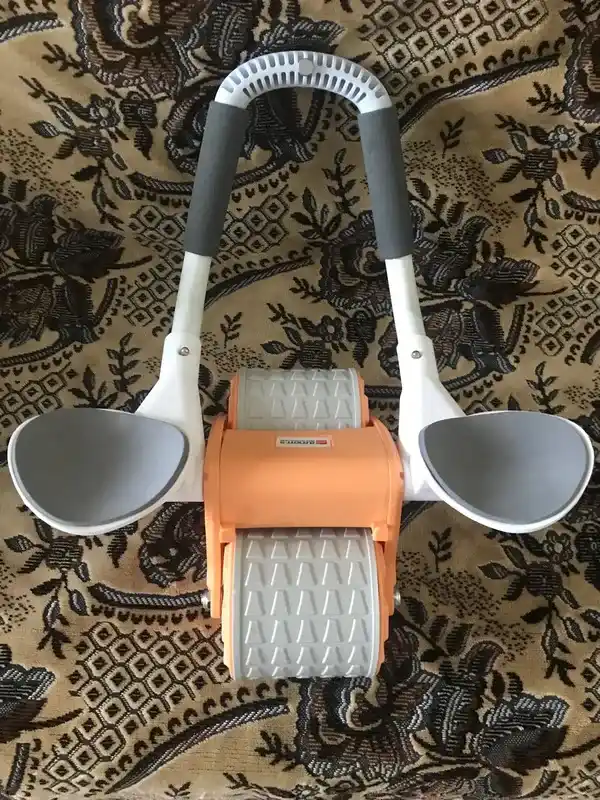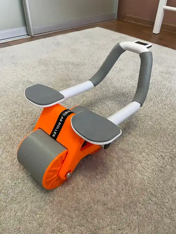 Ролик из толстого пластика, ручки и поперечная трубка в основании металлические. На подушках предплечьям удобно, не давит, нет нагрузки на запястья и ладони. Счетчик нужен только для баловства, практической цели особой нет. Есть полочка для телефона, если нужно. Собирается очень легко: воткнуть ручки до щелчка. В инструкции указано, что нагрузка до 200 кг, мы проверяли до 90, ничего не отвалилось, не заскрипело. Посмотрим, как покажет себя после регулярного использования.