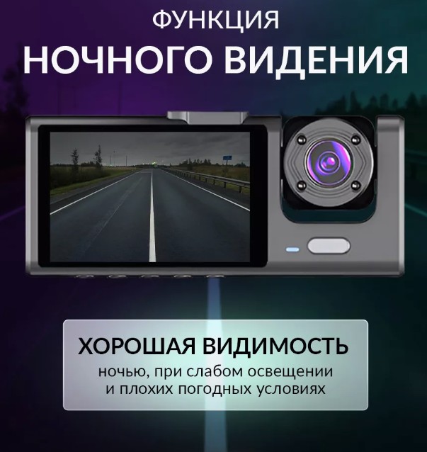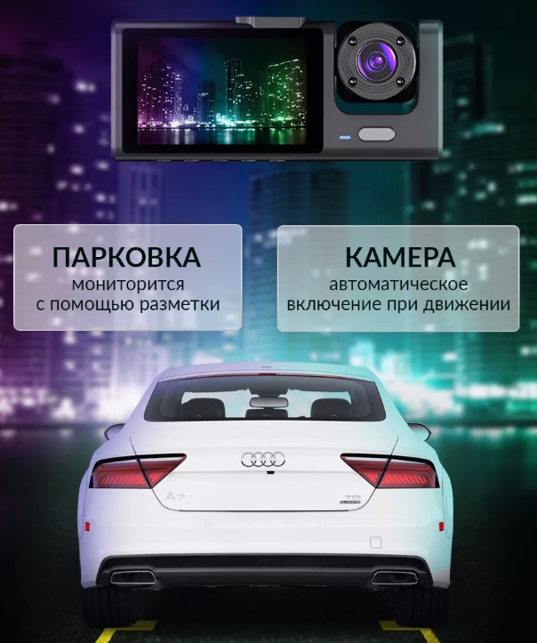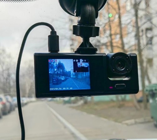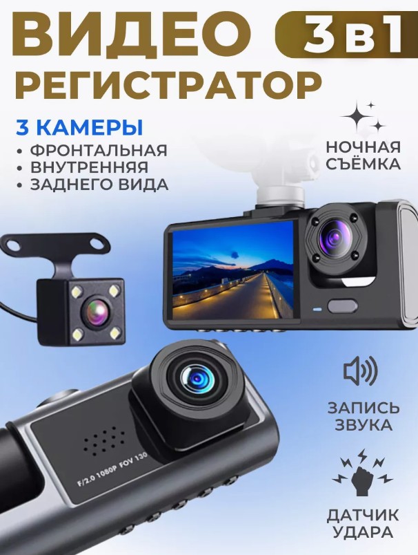 Наш тройной автомобильный видеорегистратор - надежный компаньон для каждой поездки. Он объединяет в себе три камеры - фронтальную, салонную и заднего вида, обеспечивая полный обзор всего, что происходит вокруг вашего автомобиля.